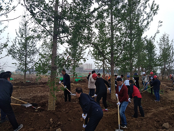 此次活動圍繞一線黨員進工地,服務項目促建設,形成人與自然和諧共生的理念,全體干部員工聯合參建單位在環形公園四期共栽植銀杏、桂花150余株,大家熱情高漲、干勁十足,挖坑植苗、揮鍬培土、踩實壓緊,配合十分默契。