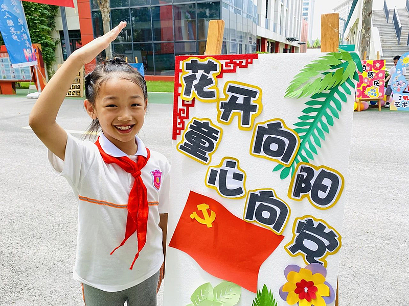活動現場,少先隊員們手拿畫筆,用靈巧的雙手在百米畫卷上創作,從畫面的構思到色彩的搭配,每一個步驟都一絲不茍。大家以畫傳情、以畫抒志,用五彩斑斕的色彩描繪祖國波瀾壯闊的歷史畫卷,一筆一畫深情地表達出對黨和祖國的美好祝愿。經過2個小時的精心繪制,一幅幅飽含深情的作品呈現在大家眼前,訴說著“我的童心永向黨,我的愛心獻祖國”的心聲。