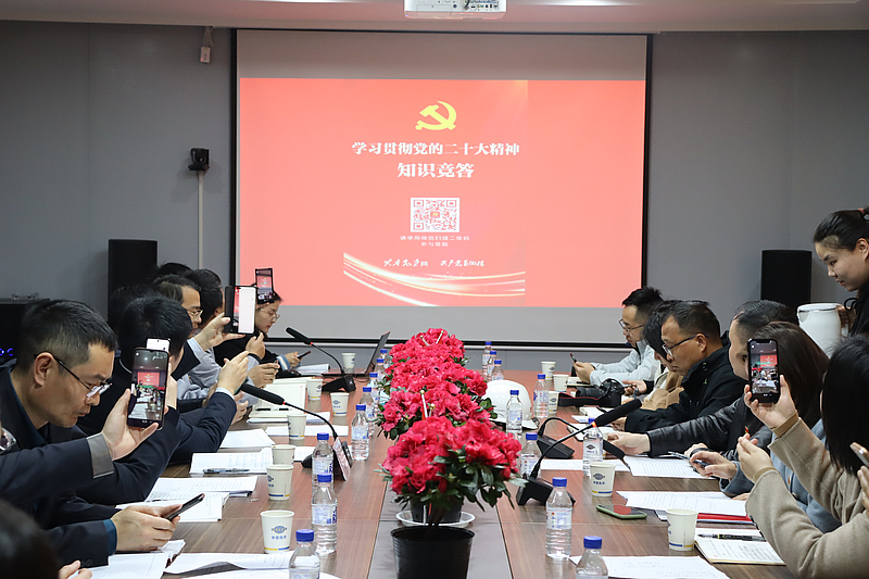 活動中,全體人員首先共同觀看《開局之年 關鍵一課》黨的二十大專題短片;隨后,集中學習《習近平在學習貫徹黨的二十大精神研討班開班式上發表重要講話精神》《全面學習、全面把握、全面落實黨的二十大精神》《青年干部要鉚足“四股勁”》內容,各支部黨員代表依次圍繞學習內容進行交流發言;最后,組織開展“學習貫徹黨的二十大精神知識競答”線上答題。