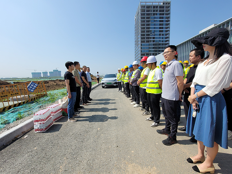 項目負責人對科創谷五路、西北四路照明工程施工進度和整體建設情況進行逐一講解。企業管理部黨支部書記、陜西MIC黨支部書記為現場作業人員發放防暑物資,對高溫作業人員進行慰問,并要求施工單位科學安排施工時間,加強防暑降溫保障,扛起安全生產主體責任,在確保安全和質量的前提下,有力有序推進項目建設。