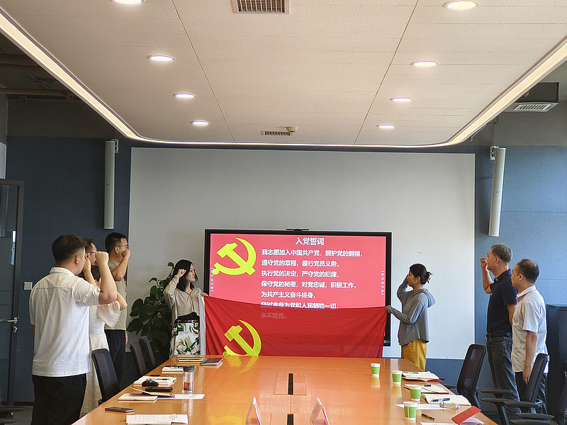 隨后召開座談會,企業管理部安全管理負責人對項目工程中的安全生產標準化進行集中培訓,雙方黨員就項目施工安全、智慧工地建設等內容展開熱烈討論。并為上半年過“政治生日”的黨員贈送政治生日賀卡,重溫入黨誓詞。