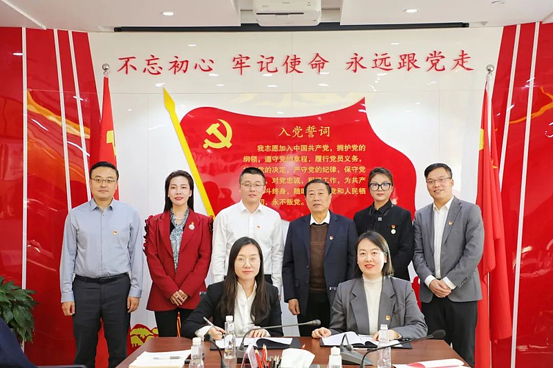 隨后,雙方簽訂了黨建共建協議,并表示將進一步堅持黨建引領,推動黨建共建走深走實,充分發揮黨建聯盟的橋梁、和紐帶作用,定期開展聯合招商推介會,提供交流合作、項目對接平臺,推動會員企業共享發展機遇,努力形成“黨建引領、資源共享、信息共通、發展共贏”的新格局,為區域聯動發展“添勁賦能”。