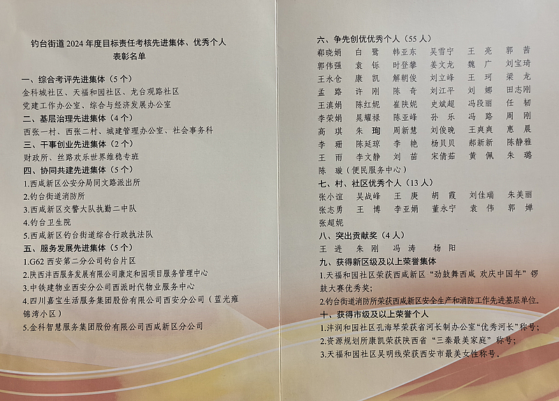 近日,灃西集團子公司——陜西灃西服務發(fā)展有限公司(以下簡稱“灃西服務”)北部回遷片區(qū)康定和園項目榮獲釣臺街道黨工委、釣臺街道辦事處頒發(fā)的2024年度目標責任考核“服務發(fā)展先進集體”榮譽稱號,標志著灃西服務在“紅色物業(yè)”黨建品牌建設與服務品質(zhì)提升方面實現(xiàn)了雙重突破為構建和諧、文明的社區(qū)環(huán)境,貢獻了力量贏得了良好的社會聲譽和口碑?。