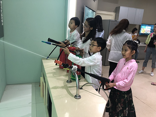 活動中,公司員工帶領孩子們參觀了消防科技館,一項項消防模擬活動讓孩子們玩的開心、學的快樂,當了一回“消防小勇士”。模擬高空緩降活動中,孩子們學習了如何從危險的高空用繩索逃生,知道了面對火災要勇敢鎮靜;模擬滅火活動中,孩子們根據電視感應顯示屏顯示的常見火災類型,選擇滅火器進行模擬滅火,學習了滅火技能,明白了知識就是力量;孩子們還參與了模擬地震、模擬煙道逃生等寓教于樂的體驗活動。在“消防知識到我家,我們牢牢記住它”的橫幅上,家長和孩子們用他們的一個個多彩的手印,許下了給孩子們一個安全多彩童年的美好承諾。公司還向各位小朋友發放了消防玩具車、科普知識書等紀念品。