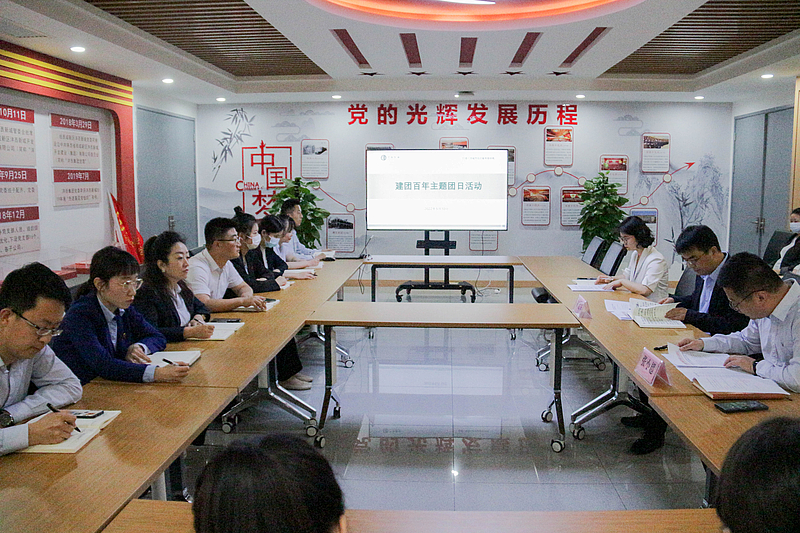 5月10日上午,為迎接黨的二十大勝利召開,慶建團100周年。灃西集團物業公司團支部組織青年團員開展建團百年主題團日活動。會上黨支部青年委員張小超宣讀了《共青團陜西灃西物業管理有限公司團支部關于“青”字號品牌創建工作方案》,黨支部書記靳文華為運營管理部、保障服務部授“青年突擊隊”授旗并領學《中共中央關于黨的百年奮斗重大成就和歷史經驗的決議》序言,最后,全體與會團員青年集體觀看《慶祝中國共產主義青年團成立100周年大年》直播。