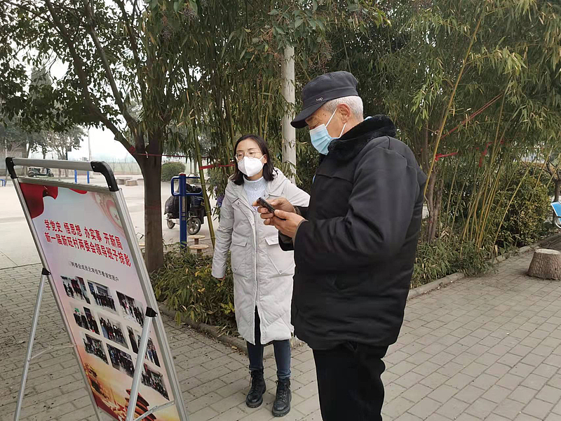 紀洋洋在新旺村向村民講解核酸檢測流程