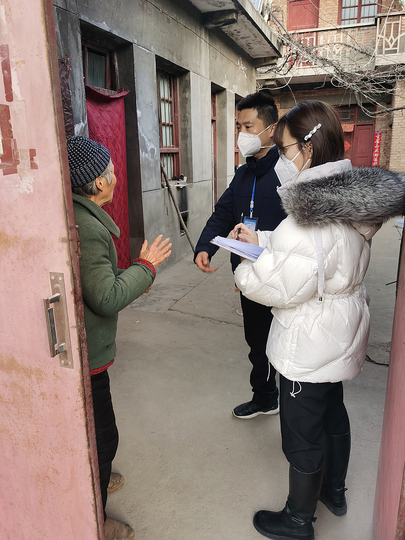 早上5點,天還未亮時,劉恒希顧不上吃早飯便啟程前往客省莊村,到達后他便與同事開始了緊張而忙碌的核酸檢測秩序維護工作,在新一輪核酸檢測完成后,他又立刻投入到“敲門行動”中,挨家挨戶上門詢問村民核酸檢測情況、是否有生活困難等。“每次執(zhí)勤工作基本上是從早上7點開始,一直忙到下午6點,要對所有村民當天的核酸檢測情況和有無生活困難進行一一核實,一定做到不漏一人。”劉恒希說到這十幾天的工作時,他覺得完成對所有村民進行實名登記和核酸檢測工作,并如實準確地上報統(tǒng)計信息,是這場與病毒較量的關鍵環(huán)節(jié),對此他絲毫不敢怠慢每一項工作。