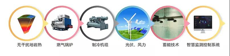 在區域供熱的基礎上,集成應用中深層地熱、光伏系統、儲能系統、燃氣調峰系統和智能控制系統建設區域能源站,為周圍建筑提供供冷、供熱和熱水服務,并充分利用峰谷電價、延長設備使用時間和多能互補的優勢,提高了能源效能和經濟效益。