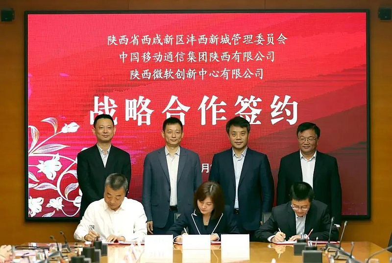 新型智慧城市建設需要信息化系統和智能設備的支持,而系統和設備的穩定高效運行,離不開5G、人工智能、大數據中心等新型基礎設施。2020年9月,灃西新城5G+戰略合作集中簽約儀式在總部經濟園舉行,灃西新城、灃西集團與中國移動、中國電信、中國聯通、杭州海康威視4家企業簽約,灃西集團與中電科西北集團簽約,共同推動新城5G相關產業發展,導入5G、AI、IoT等技術與生態資源,催生典型應用落地,打造全國領先5G+產業示范高地。