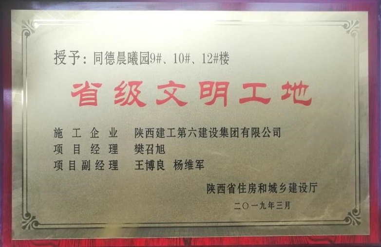 同德·晨曦園9、10、12號樓項目榮獲省級文明工地