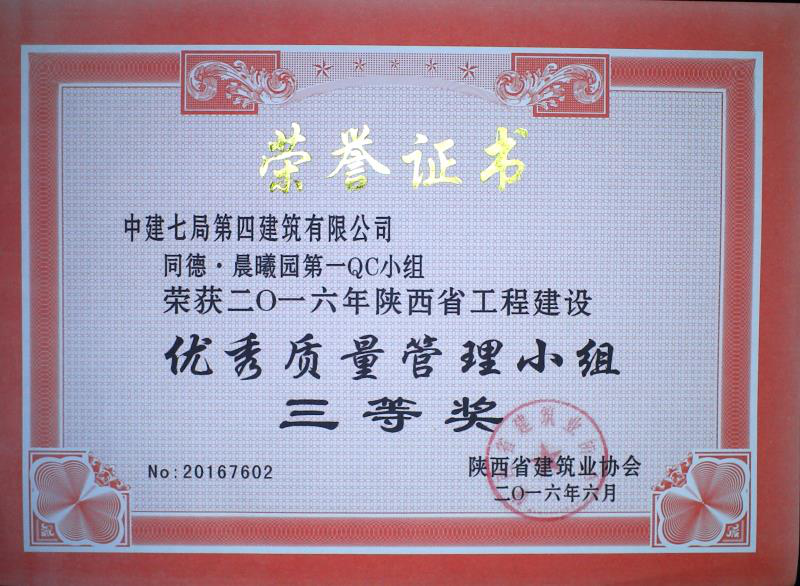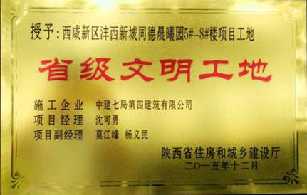 同德·晨曦園5-8號樓項目榮獲陜西省優秀質量管理