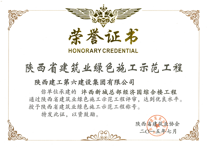 總部經濟園綜合樓工程榮獲陜西省建筑業綠色示范工程