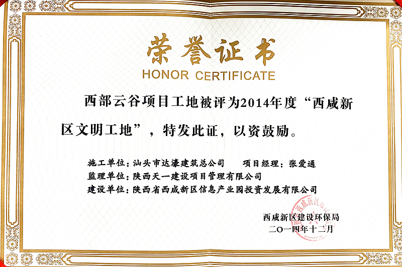 同德·晨曦園5-8號樓項目榮獲西咸新區文明工地