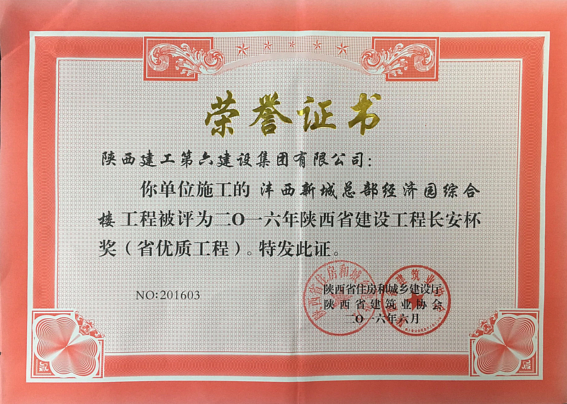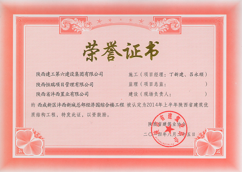 總部經濟園綜合樓項目榮獲陜西省建筑優質結構工程
