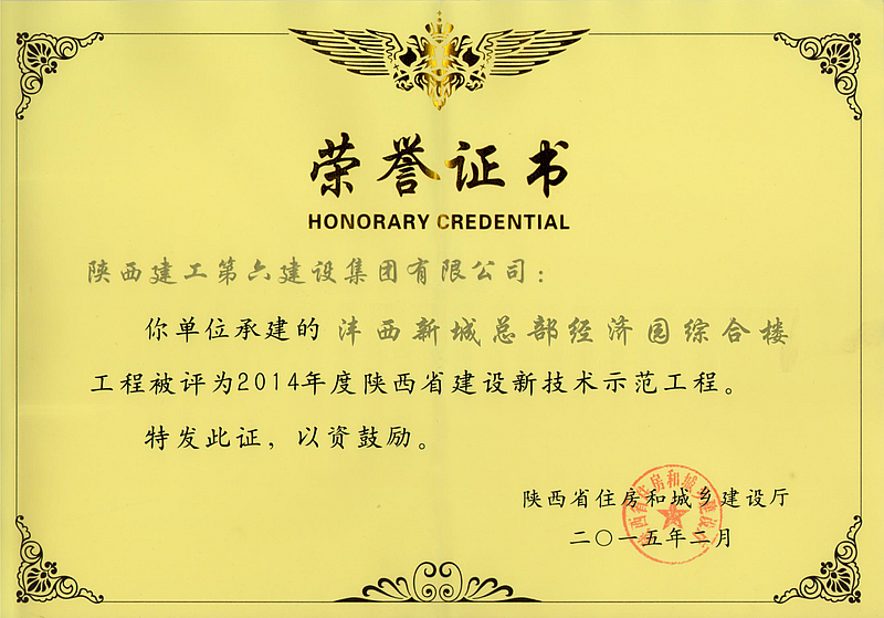 總部經濟園綜合樓項目榮獲陜西省建設新技術示范工地