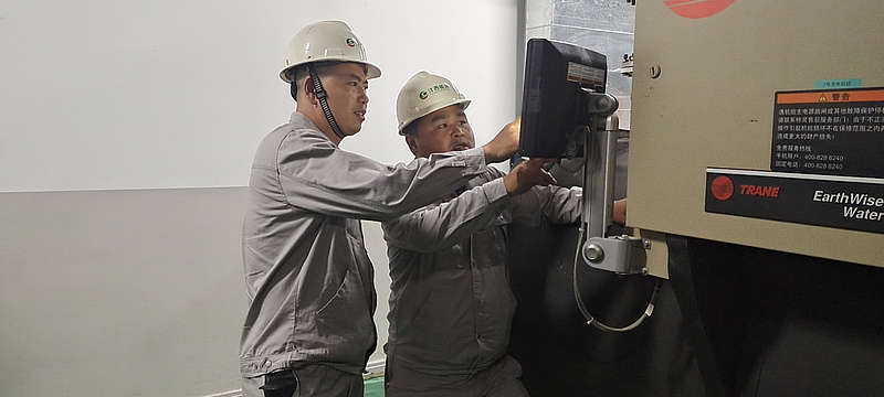 各項(xiàng)目負(fù)責(zé)人帶領(lǐng)值班人員對(duì)供冷系統(tǒng)全方位檢查,對(duì)冷機(jī)、循環(huán)水泵、冷卻塔、風(fēng)機(jī)等設(shè)備進(jìn)行巡查檢修,確保設(shè)備安全、穩(wěn)定、高效運(yùn)行??头藛T對(duì)所有用冷單位進(jìn)行全面走訪(fǎng)。他們頂著炎炎烈日,冒著高溫酷暑,從總部經(jīng)濟(jì)園到陜中二附院,從三一筑工到交大創(chuàng)新港,到處都能見(jiàn)到他們的身影。他們深入現(xiàn)場(chǎng)了解客戶(hù)的需求,在走訪(fǎng)過(guò)程中遇到戶(hù)內(nèi)溫度不適、管道堵塞等問(wèn)題,第一時(shí)間聯(lián)系維修人員上門(mén)處理,積極為客戶(hù)解決用冷的各種問(wèn)題,讓客戶(hù)真切感受到貼心的服務(wù),不斷踐行“我為群眾辦實(shí)事”的宗旨。