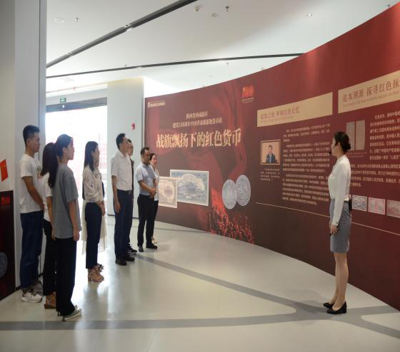 陜西MIC組織全體黨員、團員赴灃西新城規(guī)劃展覽館參觀“戰(zhàn)旗飄揚下的紅色貨幣”主題展覽。本次展覽以時間為主線,講解員通過一枚枚歷經(jīng)滄桑巨變的錢幣向大家講述著中國共產(chǎn)黨領(lǐng)導(dǎo)的紅色金融事業(yè)發(fā)展壯大的奮斗足跡,每一個展柜旁邊,都有圖片和文字組成的解說板,吸引大家不時駐足觀看,感悟紅色政權(quán)發(fā)展歷程,感受先輩們崇高的革命情懷。據(jù)了解,本次展覽共展出340種紅色貨幣,其中90%藏品是第一次公開展出。通過此次參觀展覽,全體黨員及團員深入了解黨領(lǐng)導(dǎo)下的紅色金融發(fā)展史,更加深刻感悟黨的初心和使命,進一步引導(dǎo)黨員及團員學(xué)好黨史守初心、立足本職踐使命。