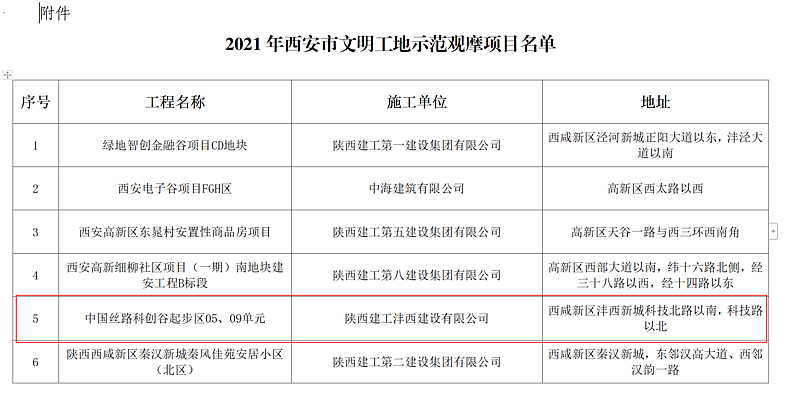 近日,由西安市住房和城鄉建設局公開評選的“市文明工地示范觀摩項目”結果揭曉,灃西集團科元公司建設的秦創原生態科創島項目(秦創原生態科創島05、09單元)被列為“西安市文明工地示范觀摩項目”。