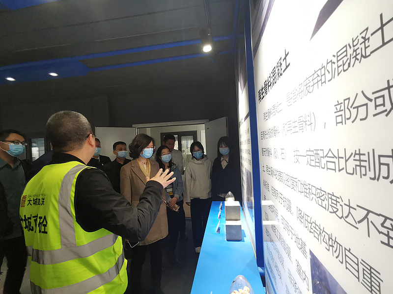 實地參觀過程中,學習人員先后前往灃景路雨水泵站項目、大城物聯商混站參觀學習混凝土創新工藝、新型環保材料拌合產品等,并與相關負責人、技術人員就環保再生材料在園林綠化工程中的創新使用進行討論交流。同時,針對新型材料產品的推廣應用,進一步建立完善高效的長效合作機制。