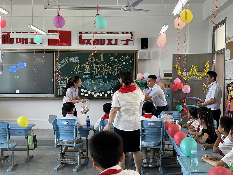 “載著童心出發,駛向的每一程都是童話?!睘栁鞯诙W校和灃西第三小學的六一活動也如期舉行,節目表演、互動游戲等花樣繁多的節目精彩紛呈,小學生們都全身心參與其中,還領到了物業校區項目用心準備的節日禮物,報告廳里、教室里都是一片歡聲笑語。
