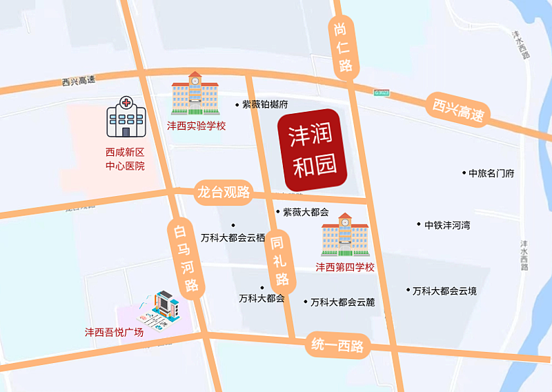 周邊市場:作為灃潤和園小區(qū)配套底商,周邊1-2公里內(nèi)小區(qū)住宅密集,西側(cè)有西咸新區(qū)中心醫(yī)院、灃西實(shí)驗(yàn)學(xué)校,南側(cè)為灃西第四學(xué)校,區(qū)域人口基數(shù)大,商業(yè)開發(fā)成熟度較高。