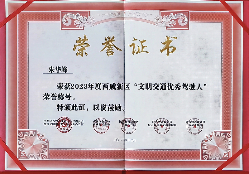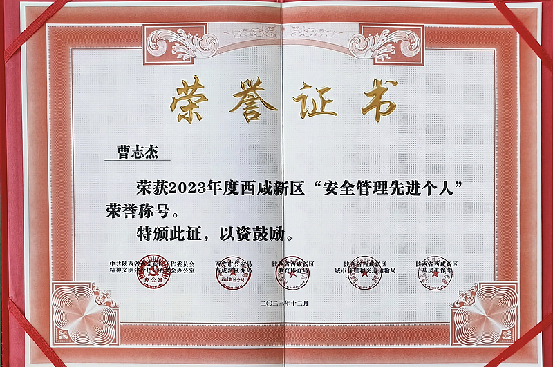 今年7月以來,西咸新區黨工委文明辦、市公安局西咸新區分局、西咸新區教育體育局、西咸新區城市管理和交通運輸局、西咸新區基層工作部等部門在全區聯合開展2023年度“文明交通示范集體和先進個人”創建評選活動。經評審,灃西集團投資公司全資子公司—西咸新區大城物聯科技服務有限公司(以下簡稱“大城公司”),榮獲“文明交通示范企業”榮譽稱號,員工曹志杰榮獲“安全管理先進個人”榮譽稱號,朱華鋒、蔣鵬飛榮獲“文明交通優秀駕駛人”榮譽稱號。