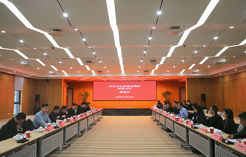 隨后雙方召開座談會,西咸信息產業園董事長溫權對商會來訪表示熱烈歡迎,雙方就各自發展情況及戰略規劃進行了深入交流,活動同時邀請了園區入駐的優秀企業代表,為雙方搭建起了交流合作平臺。