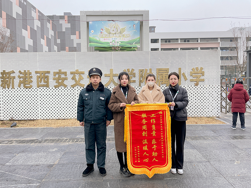 西咸新區(qū)灃西新城第二學(xué)校執(zhí)行校長權(quán)小紅一行將一面印有“真情服務(wù)盡心盡責(zé),忠于職守情暖師生”的錦旗送到了服務(wù)公司,對服務(wù)公司在學(xué)校片區(qū)細(xì)致入微、盡職盡責(zé)的高品質(zhì)服務(wù)表示由衷肯定和誠摯感謝。創(chuàng)新港西安交通大學(xué)附屬小學(xué)一名學(xué)生家長將一面印有“工作負(fù)責(zé) 樂于助人,服務(wù)周到 溫暖人心”的錦旗送到了服務(wù)公司,感謝服務(wù)公司學(xué)校片區(qū)工作人員一直以來對孩子們的關(guān)心與呵護(hù)。