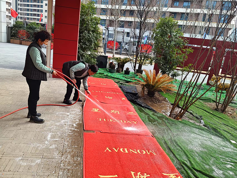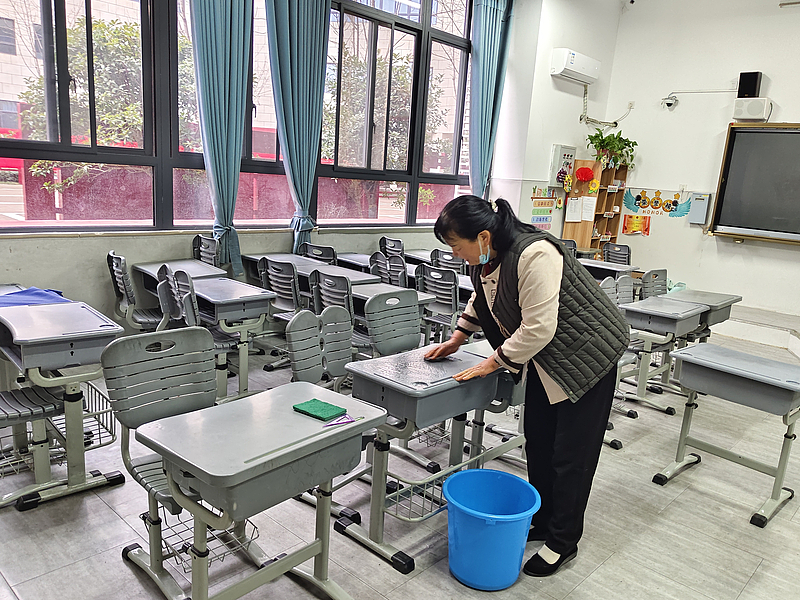 整潔的校園環(huán)境是提供優(yōu)質(zhì)物業(yè)服務(wù)的基礎(chǔ)職責(zé),但要真正落實(shí)好,還要在細(xì)節(jié)上下足功夫。擦過的課桌纖塵不染,垃圾桶垃圾日產(chǎn)日清,夠得著的地方絕不留灰,夠不著的地方有雜物便想辦法用長柄掃把挑出,蹲著將地面殘留污漬一遍又一遍的擦洗......學(xué)校片區(qū)員工們“愛校如家”的精神,換來了學(xué)校日復(fù)一日的優(yōu)美環(huán)境。