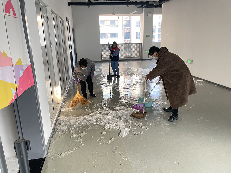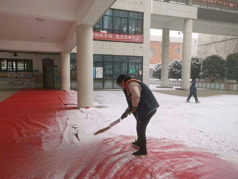 作為校園服務(wù)管家,片區(qū)工作動態(tài)性強(qiáng),每一項服務(wù)都有很強(qiáng)的時效性要求,特別是一些突發(fā)天氣情況。1月16日,2024年第一場大雪如期而至,服務(wù)公司學(xué)校片區(qū)迅速組織各業(yè)務(wù)口工作人員開展除雪保暢活動。大家齊心協(xié)力,合作分工,在教學(xué)樓各大廳門口鋪設(shè)防滑墊,使用干拖布及時打掃腳底帶入的水漬,防止有學(xué)生因地面濕滑而摔倒,并迅速清理出校園主干道。第二日上班前,再次將校內(nèi)有薄冰的地方和道路殘留積雪進(jìn)行細(xì)致清理,全力確保師生方便通行,保障校園安全。