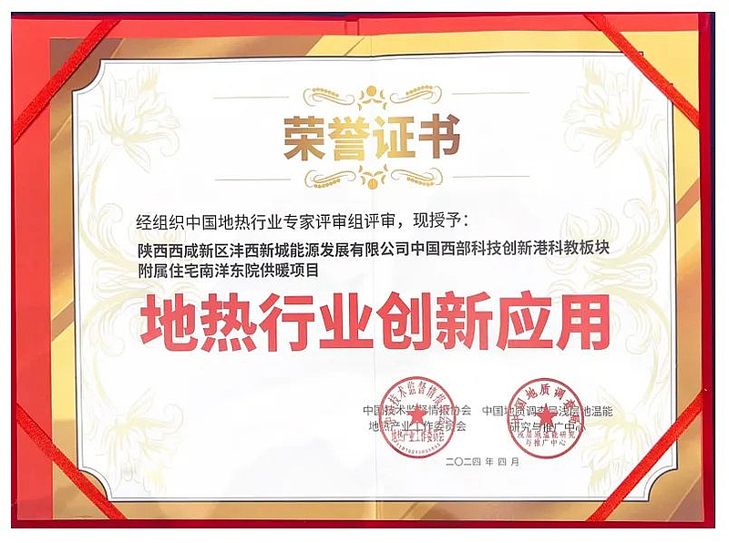 灃西能源憑借在地?zé)犷I(lǐng)域的卓越貢獻(xiàn)與創(chuàng)新應(yīng)用,以中國(guó)西部科技創(chuàng)新港科教板塊南洋東院供應(yīng)項(xiàng)目申報(bào)榮獲地?zé)嵝袠I(yè)“創(chuàng)新應(yīng)用獎(jiǎng)”。作為新城踐行綠色低碳發(fā)展理念、探索能源綜合利用的實(shí)踐主體,灃西能源緊抓高質(zhì)量建設(shè)陜西唯一中深層地?zé)崮茉圏c(diǎn)示范區(qū)的機(jī)遇,成功構(gòu)建了以中深層地?zé)崮芫C合利用為特色的智慧能源應(yīng)用新模式。近年來(lái),在中深層地?zé)崮軣o(wú)干擾清潔供熱及能源利用方面取得顯著的社會(huì)、環(huán)境、經(jīng)濟(jì)效益。截至目前,已在全國(guó)推廣應(yīng)用中深層地?zé)崮軣o(wú)干擾清潔供熱超過2600萬(wàn)平方米。