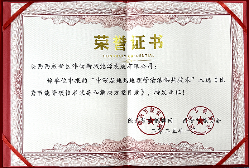 灃西能源公司掌握的中深層地熱地埋管清潔供熱技術具有零排放、無干擾、分布式、能效高、效果好等特殊優勢,在全國推廣面積超過2800萬平方米,已經列入《國家綠色技術推廣目錄(2020年)》,先后榮獲“陜西省建設工程科技進步獎特等獎”和“中施企協2021年工程建設科學技術進步獎一等獎”,技術查新鑒定為“國際領先”。