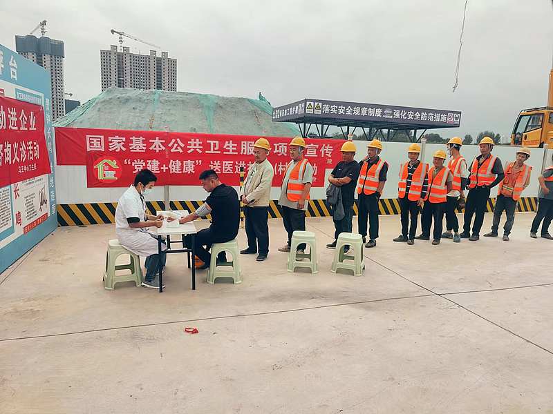 為切實強(qiáng)化項目安全生產(chǎn)管理,提高一線建筑工人的疾病預(yù)防意識與健康觀念,9 月 21 日上午,一場充滿溫情的 “愛心義診” 活動在大王、馬王雨水泵站項目工地?zé)崃议_展。