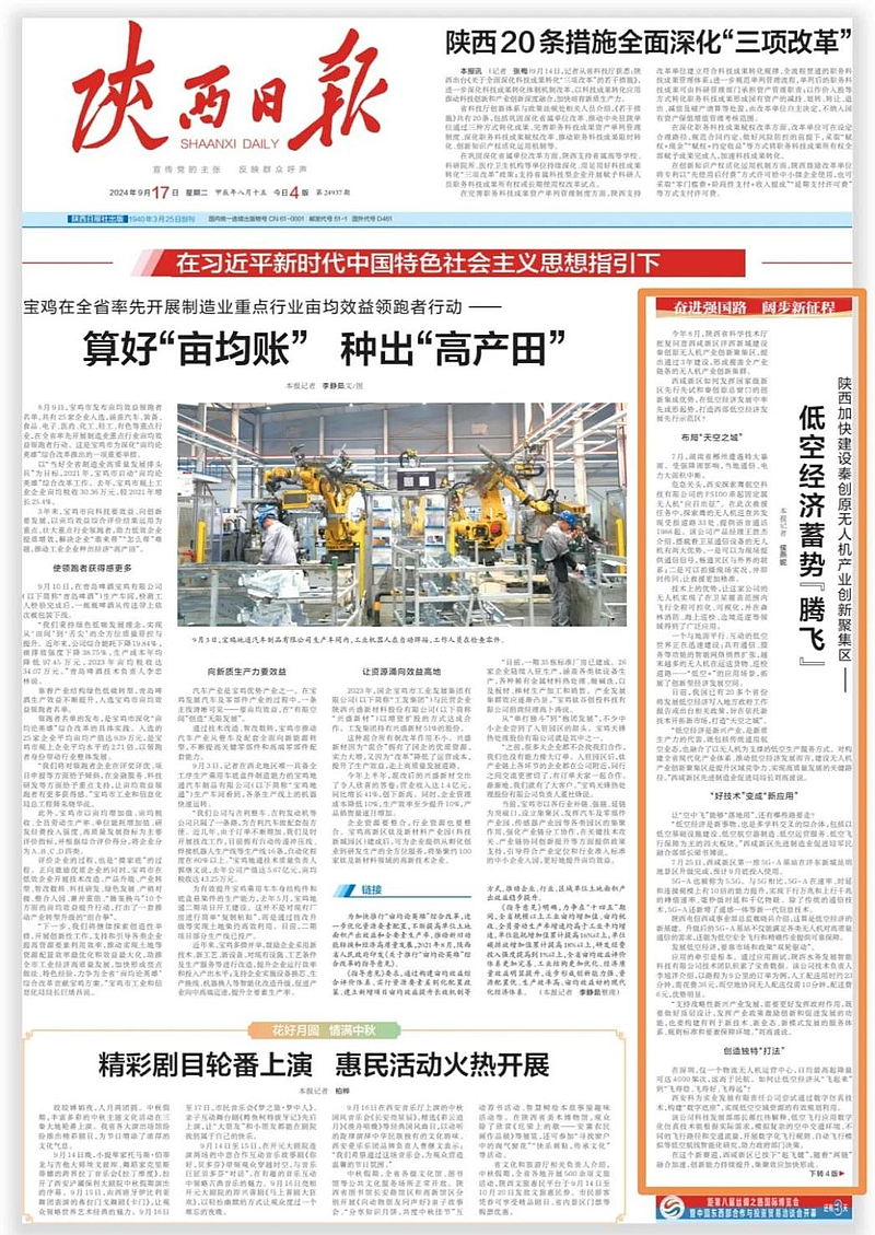 近日,陜西日報頭版刊發(fā)《陜西加快建設(shè)秦創(chuàng)原無人機(jī)產(chǎn)業(yè)創(chuàng)新聚集區(qū)——低空經(jīng)濟(jì)蓄勢“騰飛”》,報道西咸新區(qū)作為秦創(chuàng)原總窗口在低空經(jīng)濟(jì)發(fā)展中率先成形起勢,打造西部低空經(jīng)濟(jì)發(fā)展先行示范區(qū),為高質(zhì)量發(fā)展不斷注入強(qiáng)勁動能。自2023年起,灃西科創(chuàng)搶抓低空經(jīng)濟(jì)新賽道,提前布局無人機(jī)產(chǎn)業(yè),在產(chǎn)業(yè)氛圍營造、產(chǎn)學(xué)研合作、產(chǎn)業(yè)配套服務(wù)體系搭建等方面開展了一系列工作。