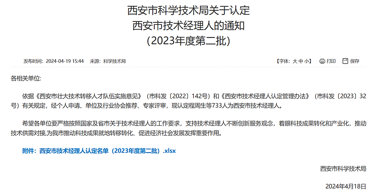 4月19日,西安市科學技術局發(fā)布了關于認定西安市技術經(jīng)理人的通知(2023年度第二批),灃西科創(chuàng)&MIC13人通過認定。截至目前,灃西科創(chuàng)&MIC已有陜西省技術經(jīng)理人7人,西安市技術經(jīng)理人24人,技術經(jīng)理人執(zhí)業(yè)資格24人。