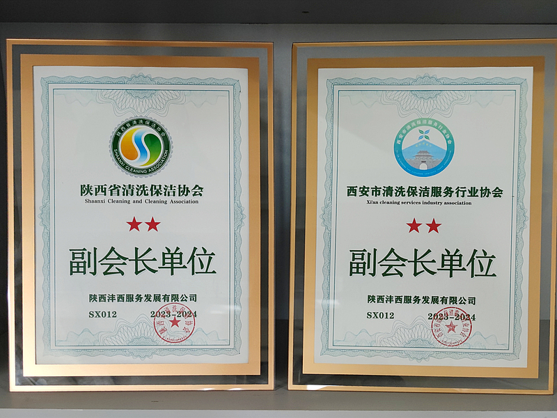 10月31日,灃西集團服務公司獲“陜西省清洗保潔協會副會長單位”“西安市清洗保潔服務行業協會副會長單位”授牌。服務公司將以此次授牌為契機,聚焦業主“急難愁盼”,加快推進標準化體系建設、員工技能提高改造等工作,提升服務品質。同時,強化多元布局,不斷開拓布局新的衍生服務,進軍清潔保潔、家政服務等新市場,形成推動公司高質量發展的強大動力。