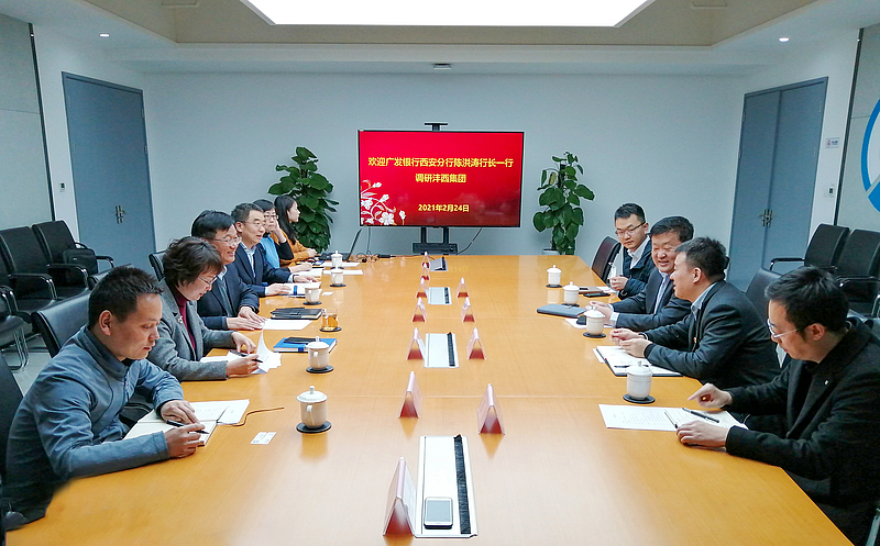 2月24日下午,廣發(fā)銀行西安分行副行長陳洪濤一行到訪灃西集團(tuán)座談交流。灃西集團(tuán)黨委書記、董事長楊建柱,總經(jīng)理姜勤發(fā),總經(jīng)理助理王莉參加。