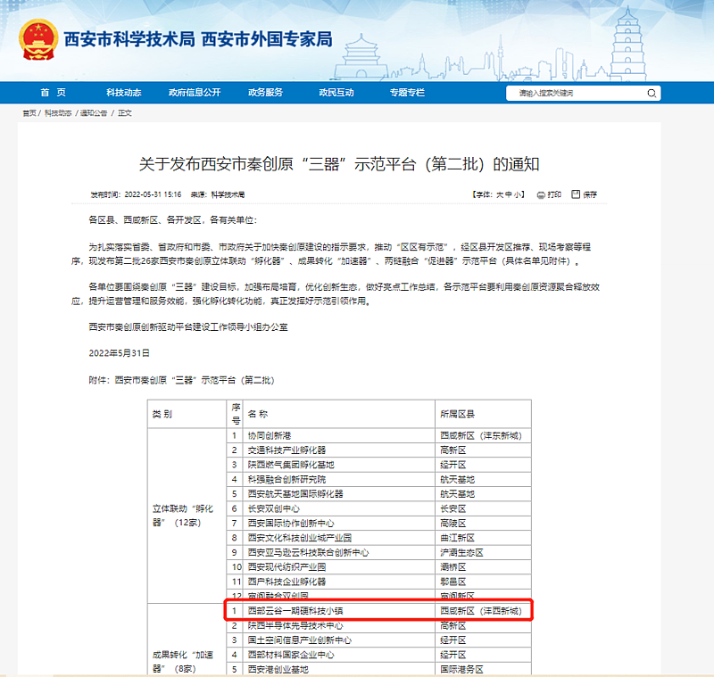 近日,西部云谷硬科技小鎮一期被認定為西安市秦創原成果轉化“加速器”示范平臺之一。