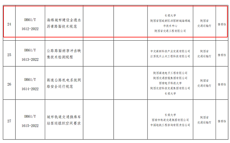 近日,灃西集團海綿城市技術(shù)中心聯(lián)合長安大學(xué)編制的《海綿城市建設(shè)全透水瀝青路面技術(shù)規(guī)范》(DB61/T1612-2022)已正式發(fā)布,將于2022年11月12日起實施。