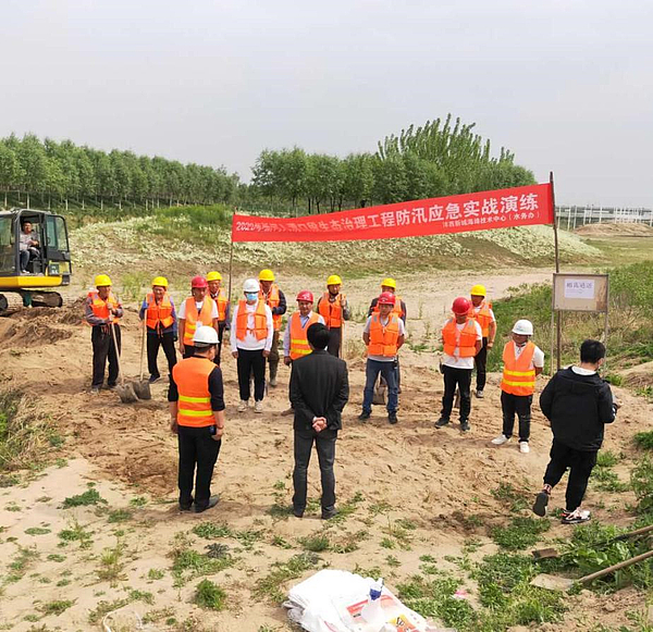 4月17日下午,海綿城市技術中心在新河入渭口段生態治理工程項目現場開展2020年防汛度汛實戰演練活動。