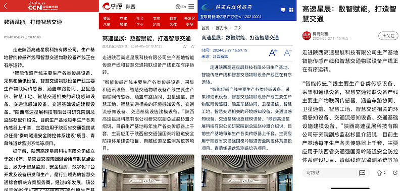 產(chǎn)品不斷更新、應用場景不斷增加。陜西高速星展科技有限公司還通過多項安全管理體系認證,參建了“交通運輸部衛(wèi)星技術交通運輸行業(yè)研發(fā)中心”“省級企業(yè)技術中心”“西安市交通土建結構安全檢測工程技術研究中心”等科研平臺。
