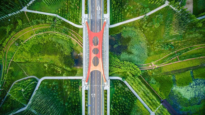 豐耘橋南起公園大街,北至秀雅路,全長324.7米,其中橋梁形式為下承式提籃系桿拱橋,共一跨90米,道路紅線寬度40米,雙向四車道,道路等級為城市次干路,設計行車速度40km/h。