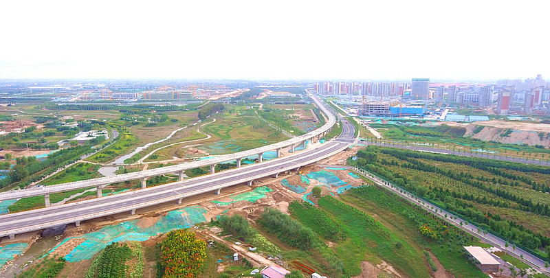 新港橋為西起便門橋路,東至云杉東路。長516米,規劃紅線寬度30米,雙向4車道,兩側非機動車道,人行道各3米。新港橋作為新城重要的關鍵交通節點,使得中國西部科技創新港、咸陽市高新區、灃西新城翱翔小鎮、總部經濟園互聯互通,為該片區產、學、研奠定基本條件。
