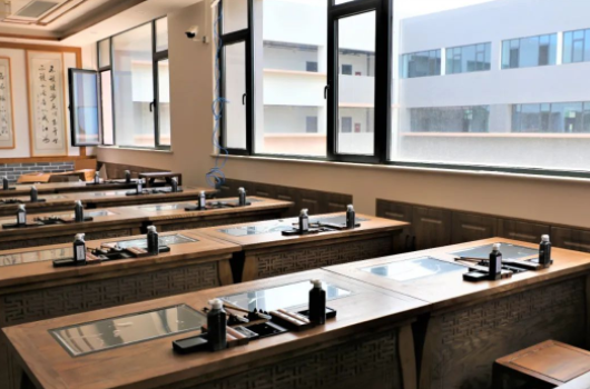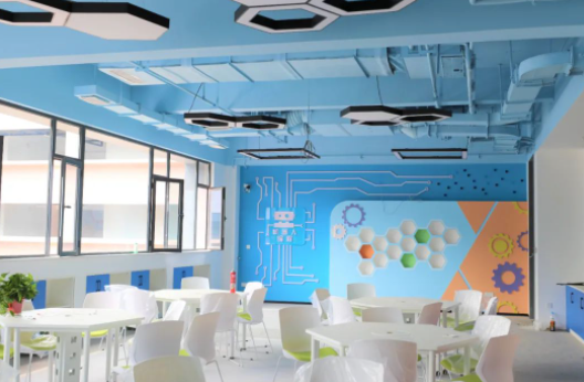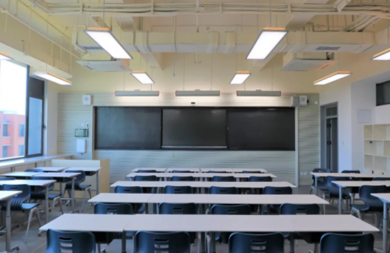 音效保障:為保證老師講課效果并避免聲音擴(kuò)散,在前后墻面采用吸音板并內(nèi)填吸音棉,以保證吸音效果。同時(shí),教室安置聲麥設(shè)施,有效提升老師、學(xué)生音量,確保教學(xué)過(guò)程中老師與學(xué)生之間的有效溝通。