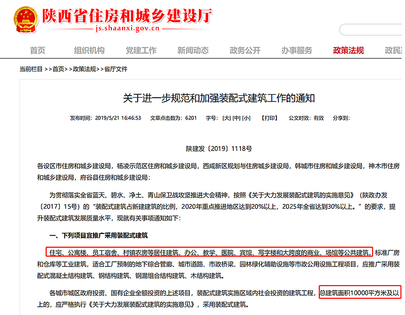 2019年5月21日,陜西省住房和城鄉(xiāng)建設廳發(fā)布《關于進一步規(guī)范和加強裝配式建筑工作的通知》,進一步規(guī)范了陜西省裝配式建筑工作的方方面面。
