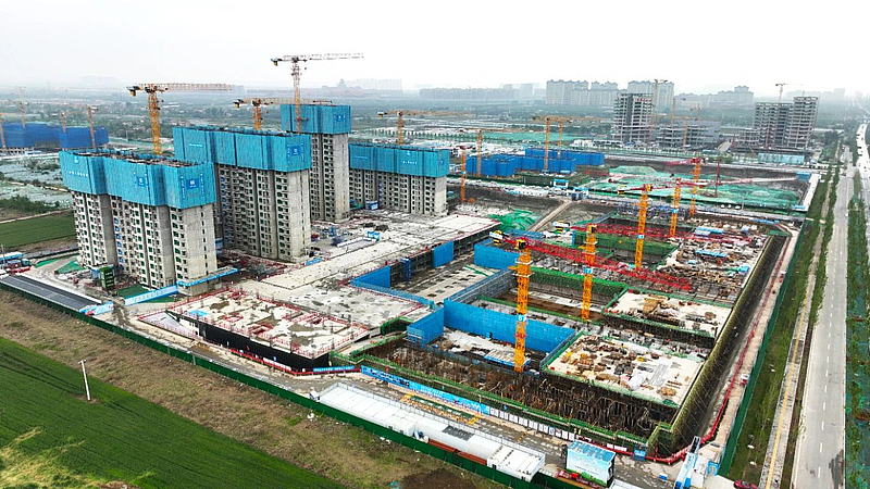 江渡新苑項目位于灃西新城創新環東路以東,咸戶路以西,科技路以南,CXG東北二十路以北,分為南北兩個標段。占地面積約177畝,總建筑面積約55萬平方米,建設內容包含17棟住宅、3棟商業樓、配套幼兒園和地下車庫,可為2684戶居民提供安置用房。